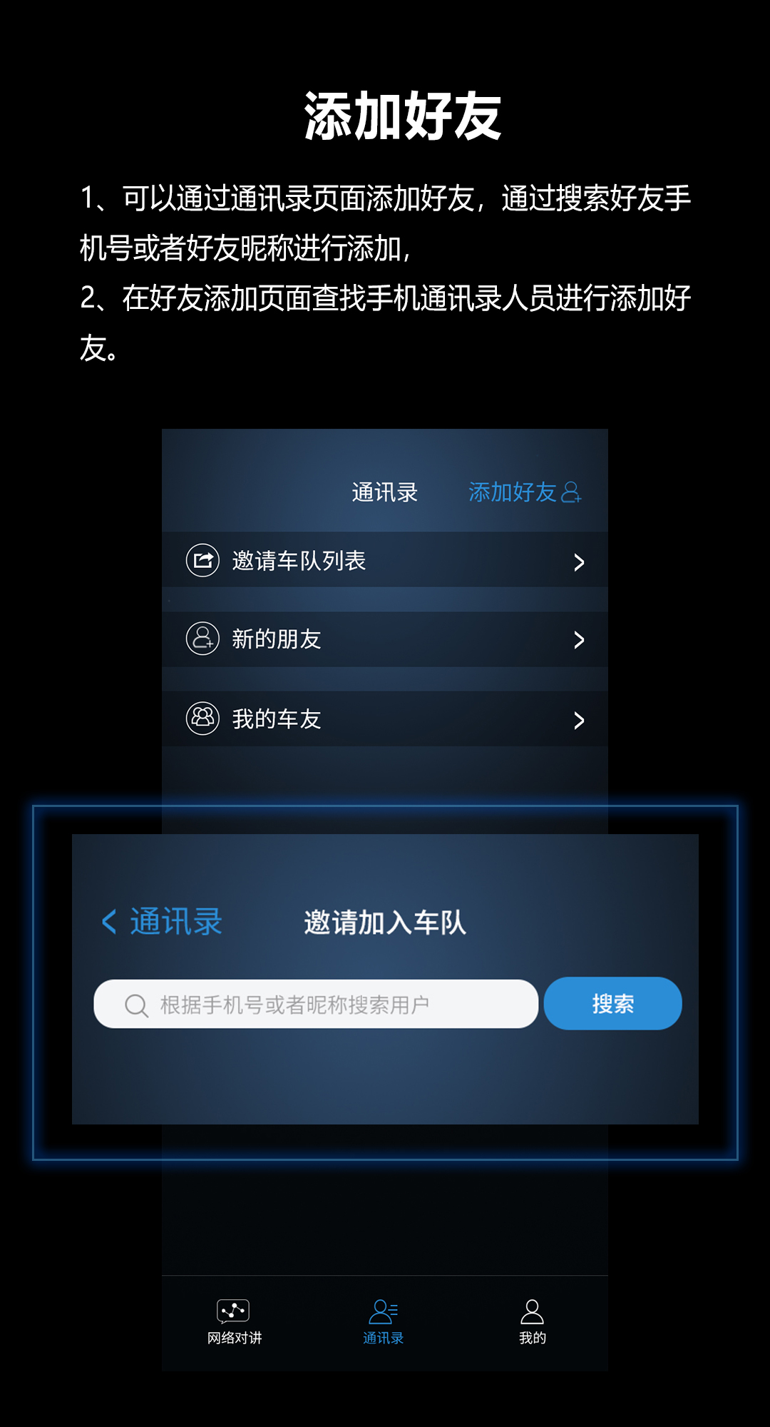 1、可以通过通讯录页面添加好友,通过搜索好友手机号或者好友昵称进行添加,