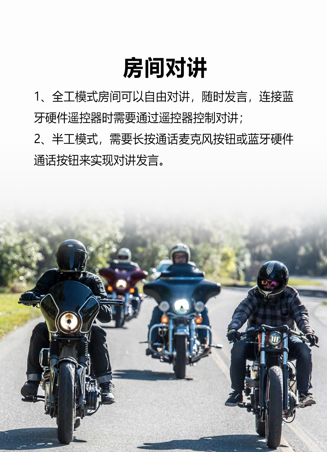 2、半工模式,需要长按通话麦克风按钮或蓝牙硬件通话按钮来实现对讲发言。