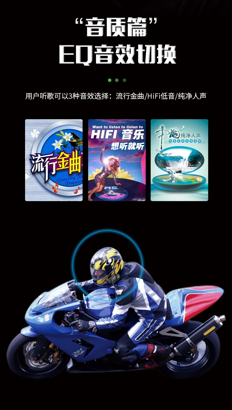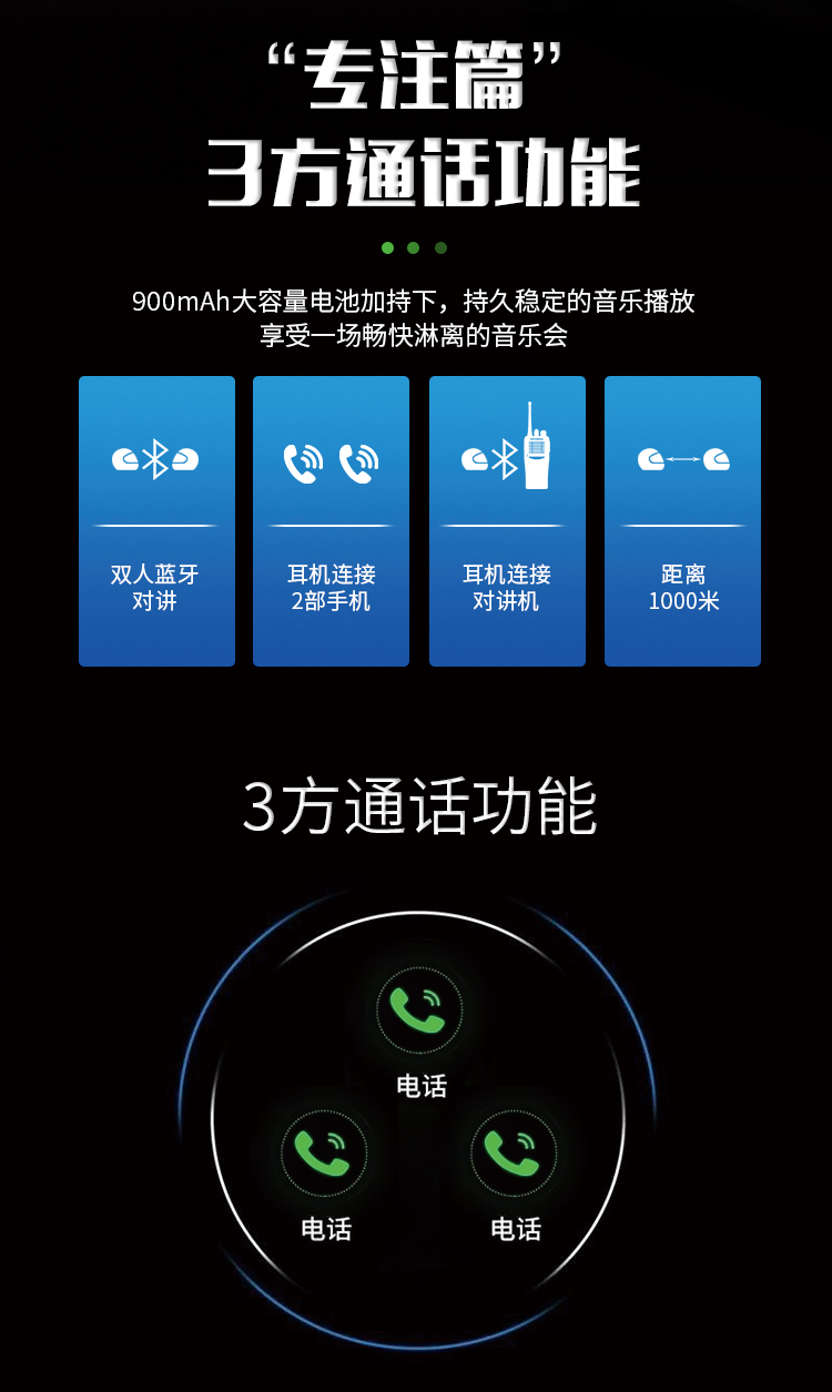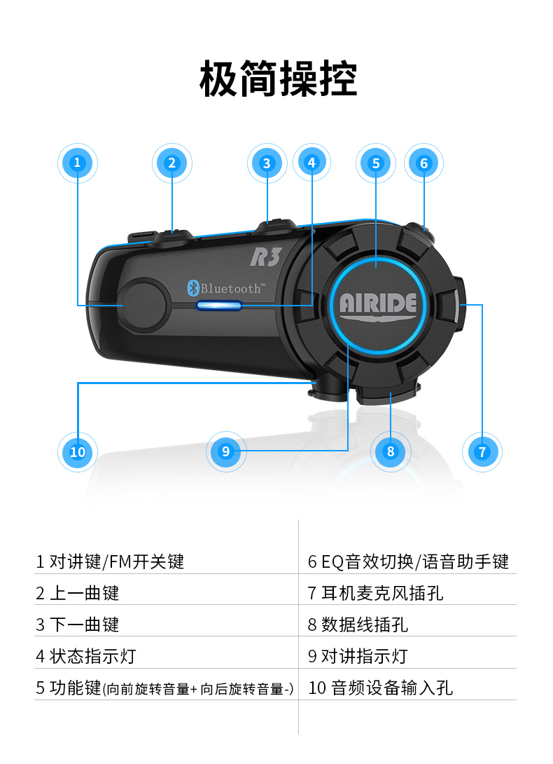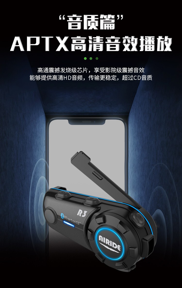 产品特点:满足两人摩旅1000米对讲距离;内置全频段收音机功能,不错过任何频道;与智能手机相连解放双手让骑行更安全(苹果SIR功能,安卓需先打开语音助手功能);智能播报(开机,关机,配对,电量播放等);外置音频接口通过K线连接对讲机实时沟通。